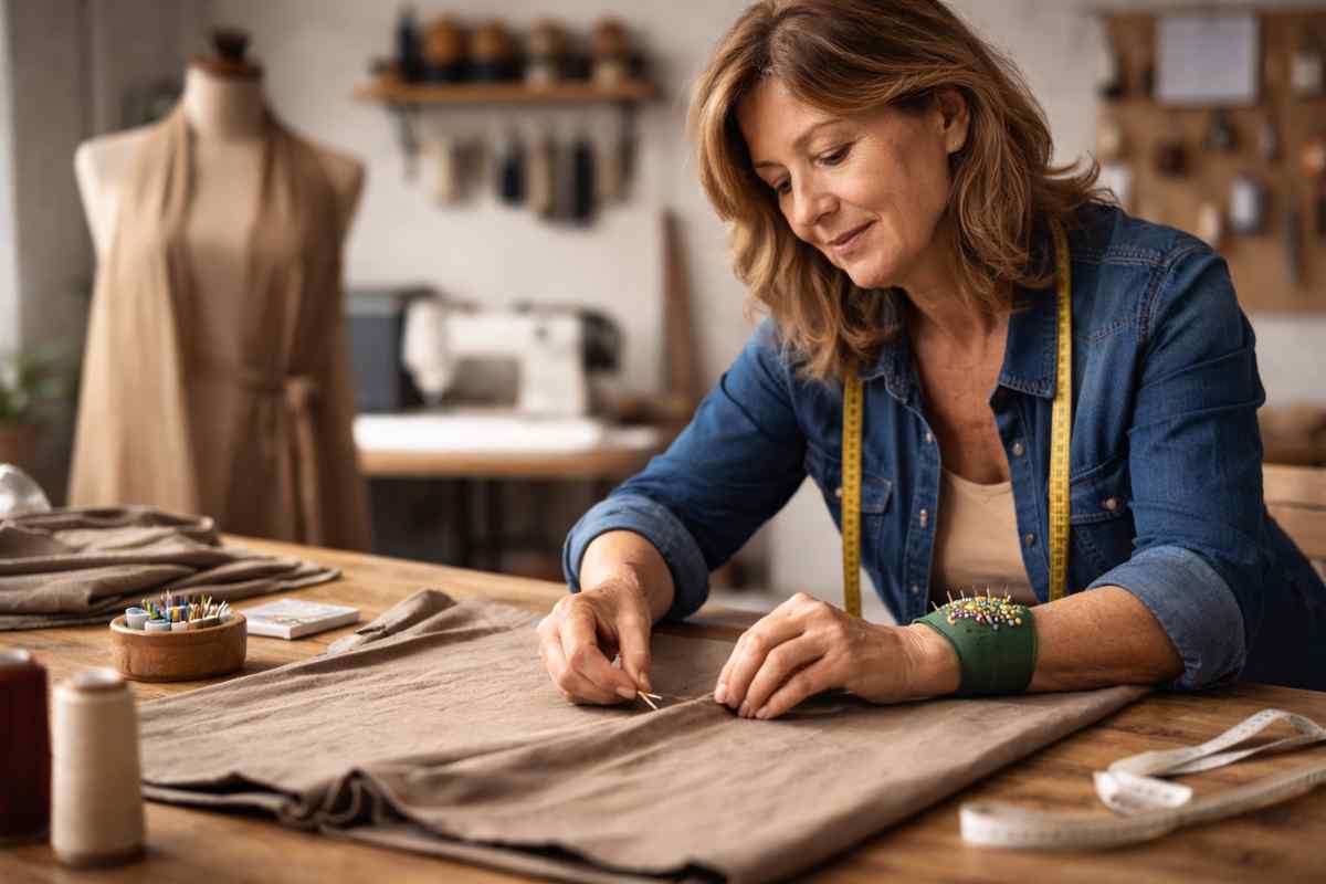 Il procedimento è quasi banale, ma richiede occhio. Prima di tutto, dimenticate i righelli millimetrici. Il corpo umano non è fatto di angoli retti. Indossate il capo, fate il risvolto davanti allo specchio e fissatelo con un paio di spilli. Qui entra in gioco un dettaglio che spesso sfugge: mentre prendete la misura, non guardatevi i piedi. Chinarvi altera la tensione del tessuto sulla schiena e vi ritroverete con una gamba più corta dell’altra. Restate dritti, come se doveste sostenere un colloquio importante, e lasciate che sia qualcun altro a segnare l’altezza o usate uno specchio lungo.