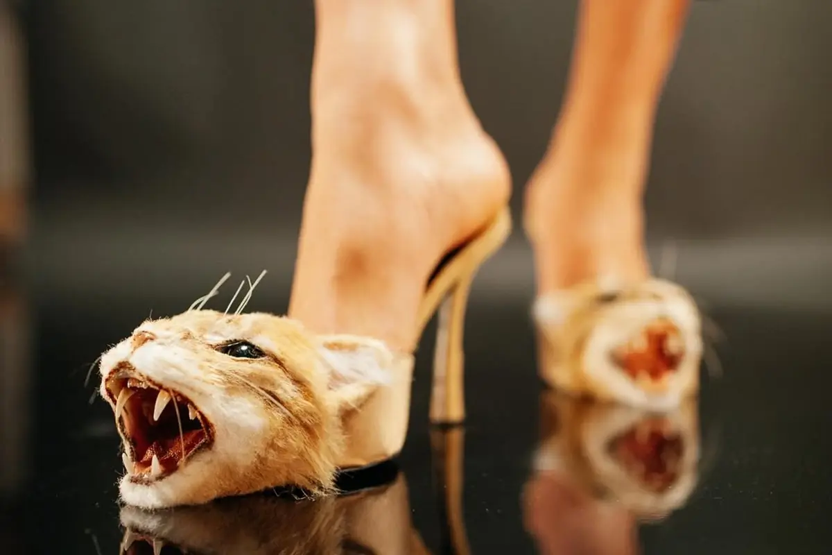 Tra gli elementi più fotografati dello show ci sono i nuovi kitten heels. Sandali dal tacco basso che riproducono la faccia di un gatto.